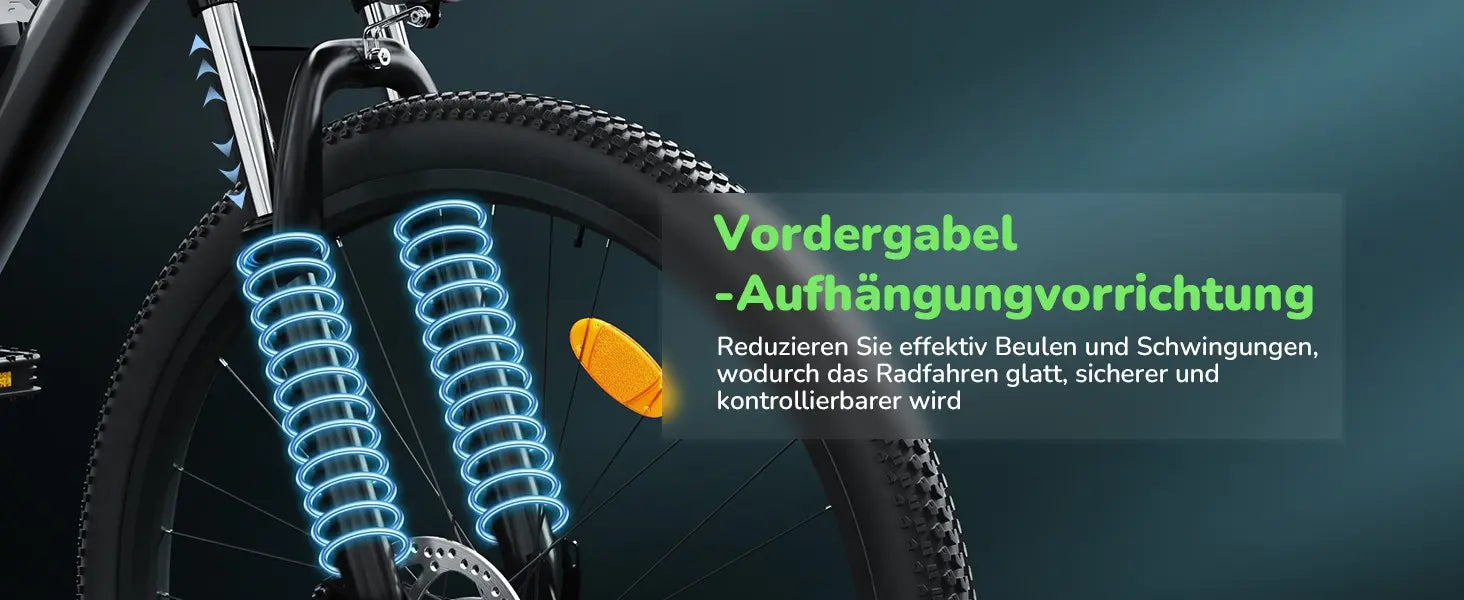 Mit vorne und hinten mechanischen Scheibenbremsen ausgestattet, gewährleistet dieses Fahrrad zuverlässige Bremskraft und Sicherheit auf verschiedenen Gelände.