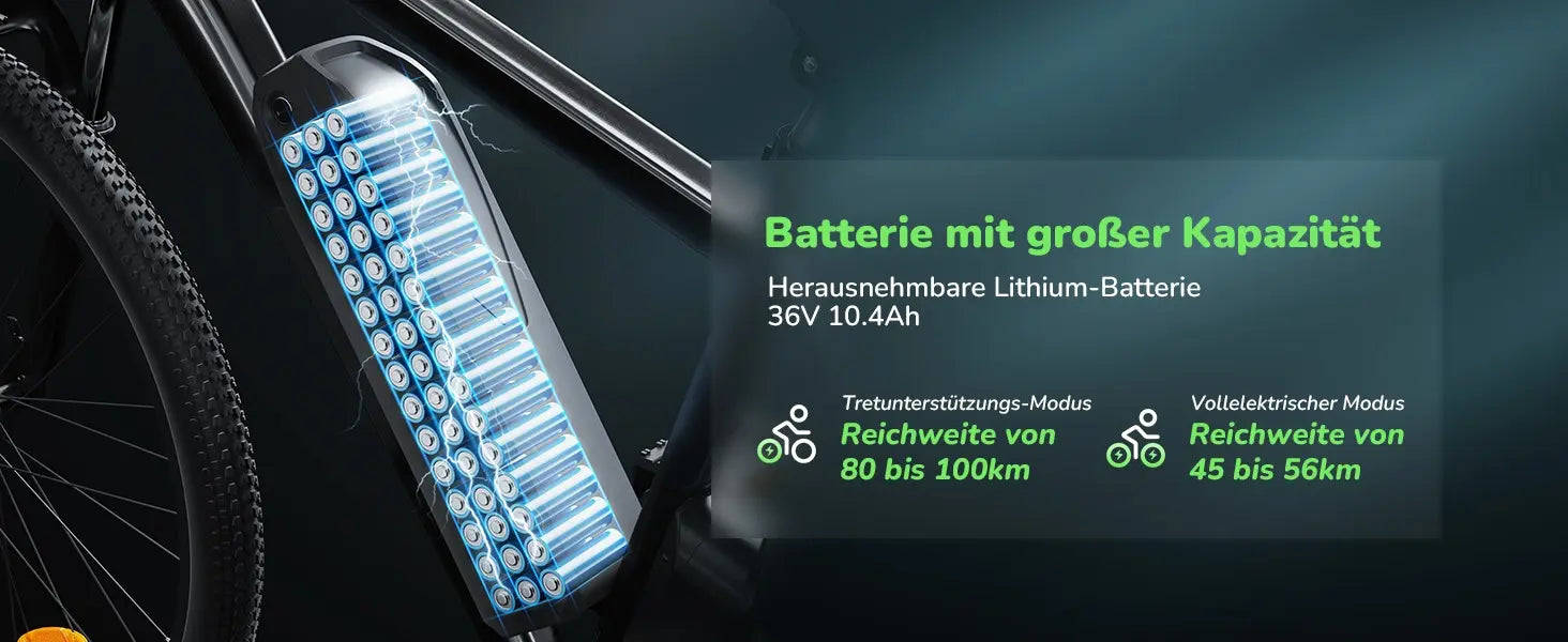 Akku: 36 V 10,4 Ah (374,4 Wh)