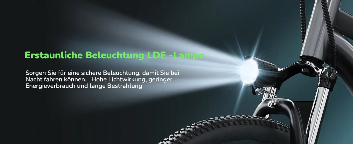 Ausgestattet mit Vorder- und Rücklichtern verbessert dieses Fahrrad die Sichtbarkeit und Sicherheit bei Nachtfahrten.